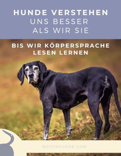Unsere Hunde werden im Laufe ihres Lebens echte Meister darin menschliche Körpersprache zu lesen und zu deuten. Sie lernen es quasi als ihre 1. Fremdsprache und wachsen – je nach persönlicher Geschichte – meistens quasi bilingual auf. Wenn wir Menschen uns unserer eigenen Körpersprache nicht bewusst sind und sie nicht mit unseren Worten übereinstimmt, wird’s schwierig für den Hund. Denn als Menschen fokussieren wir uns stark auf unsere Worte. Während die Hunde immer der Körpersprache das höhere Gewicht geben. Denn das ist auch ihr wichtigstes Kommunikationsmittel.